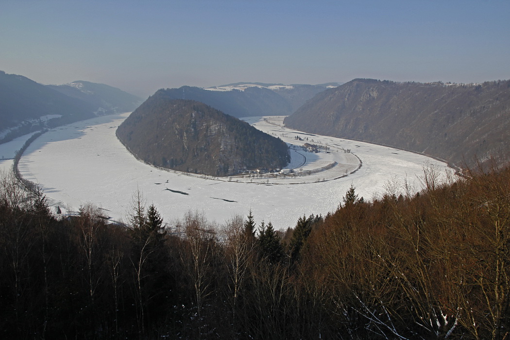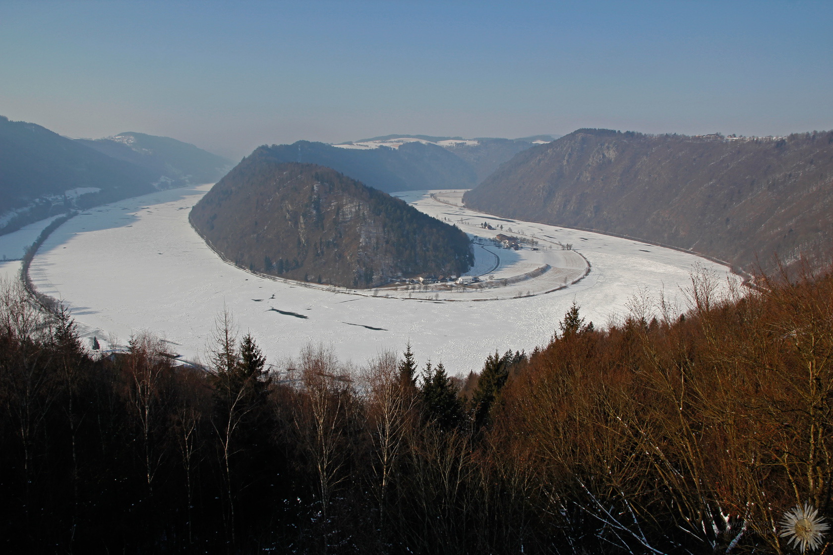 Here an unusal picture of the Schlögener Schlinge: the "Blue Danube" completely in white.