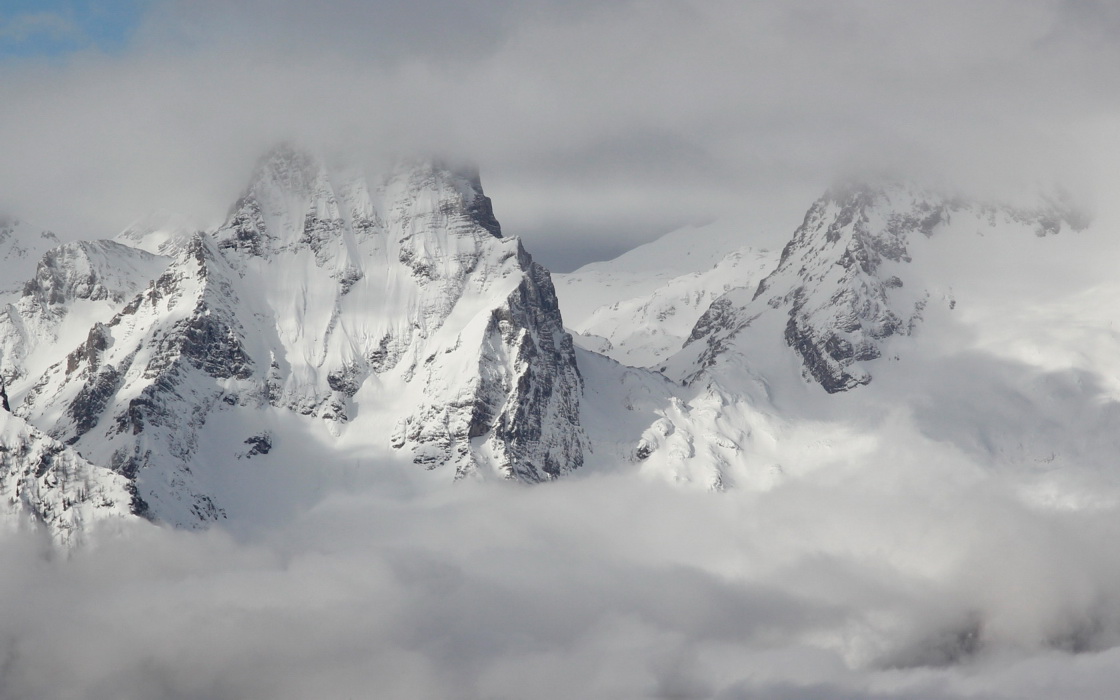 A snowy Spitzmauer, peaking out between the clouds.