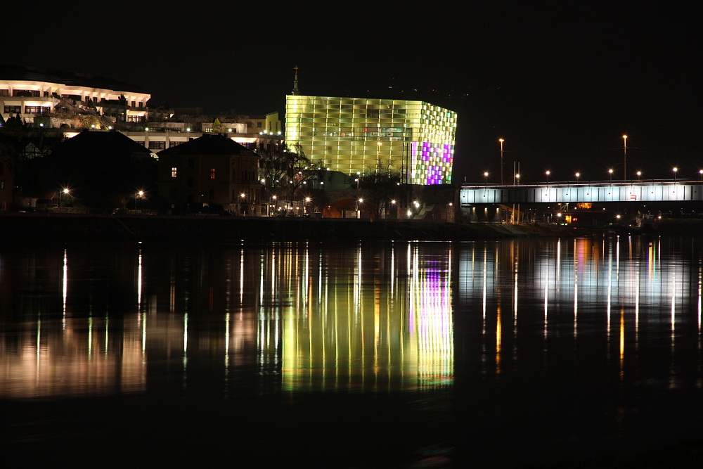 The new "Ars Electronica" Building. It is difficult to photograph it the way you want at night - because sometimes its color changes so quickly!