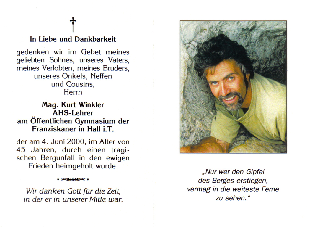 Kurt died on 4. Juni 2000. He was climbing a lot with Hans Salcher, and Hans' sun put up In