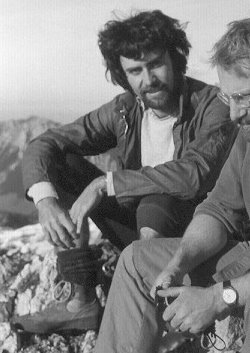 with a rope!", after Klaus fell to his death on the decent, climbing