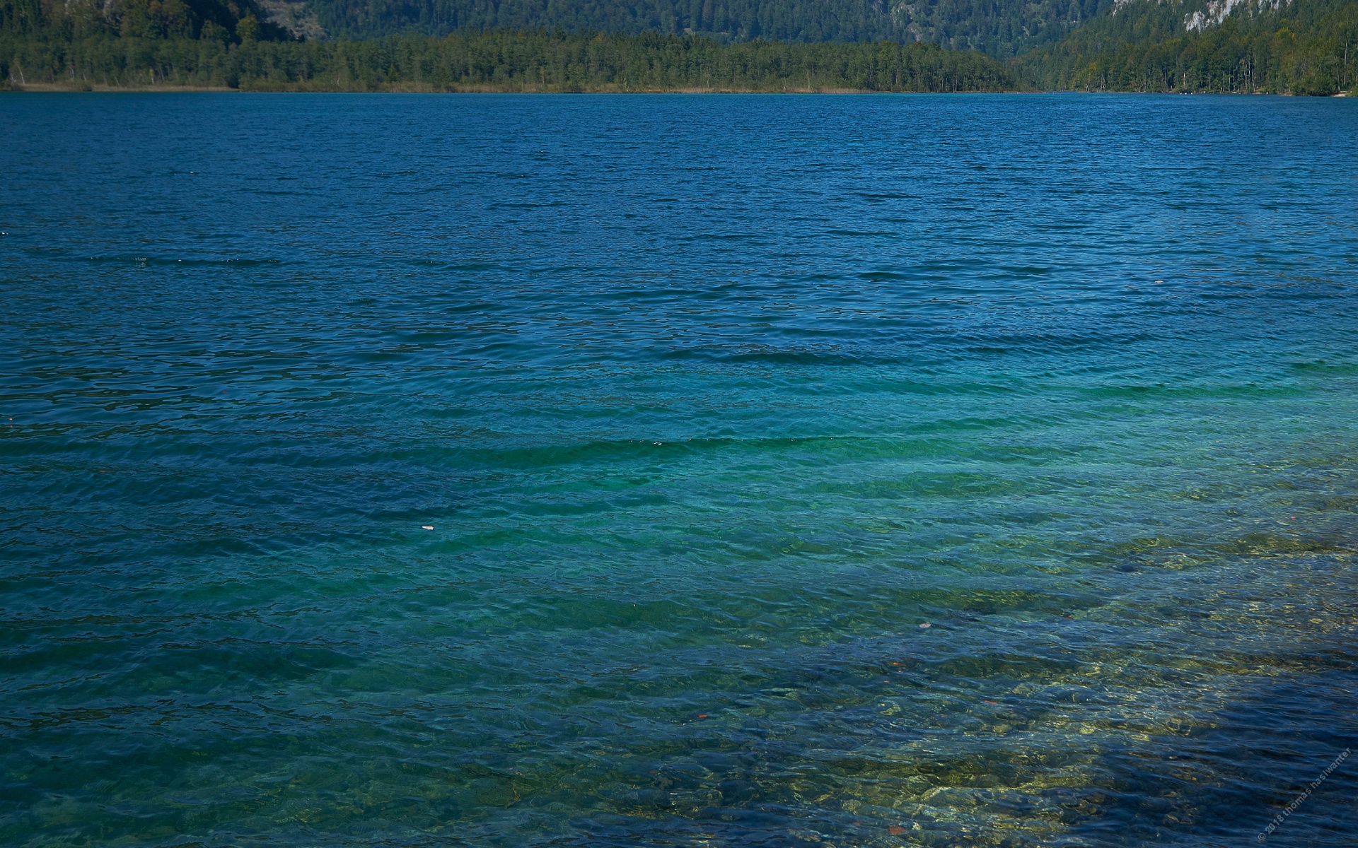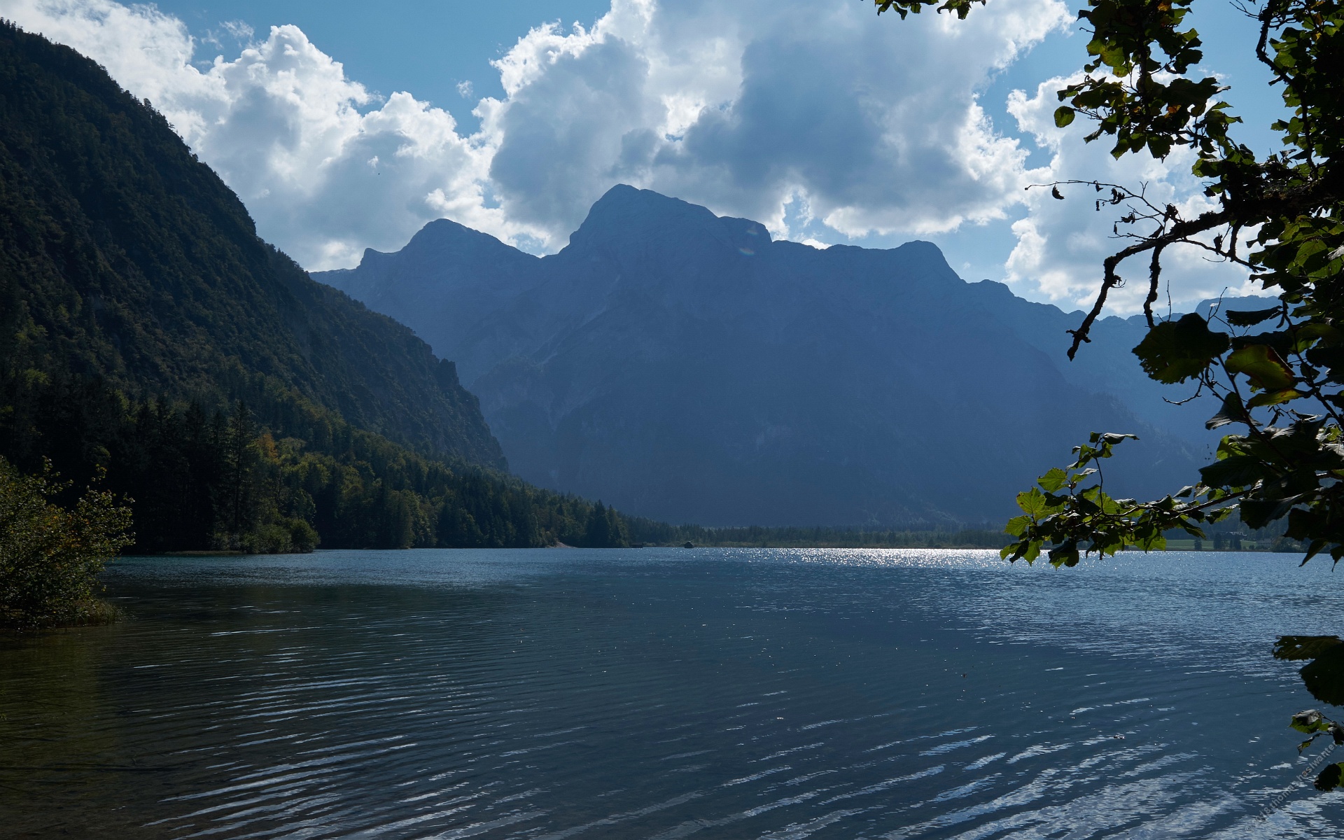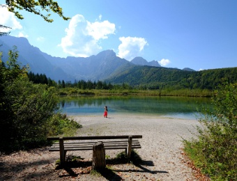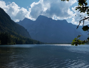 Die Dame in Rot, ....... der satt grĂ¼ne Wald, ...... und das blaue Wasser.Der Almsee ...mit dem Blick auf das "Steinerne Meer" AchenseeBerglsteiner-See