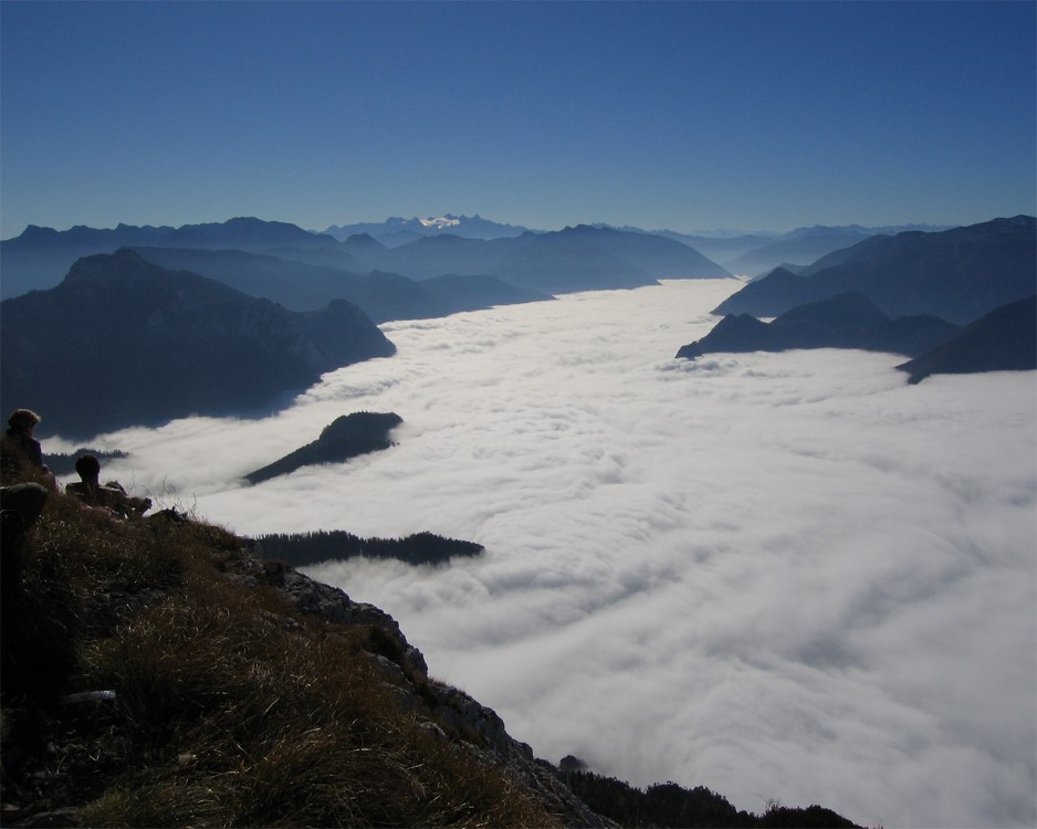 Der Dachstein, ueber dem Nebelmeer. Schoener geht's fast nicht mehr.