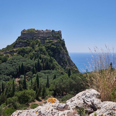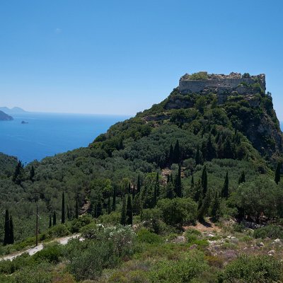 Angelokastro, maybe the most impressive castle I have ever seen.The orchards are beautiful and romantic. But it is hard work, and hard to make a living off it.In 1517, when the Ottomans attacked Angelokastro, 3,000 villagers had retreated inside the safety of the walls of the castle.The country: steep, dry hils, overlooking the ocean.Looking down from Angelokastro - the "flatter" sideRoyal beaches - Odysseus lived on Ithaka, the next island.Looking down from Angelokastro - the steep sideRock-cliffs on the W-side of the islandThe Adriatic seaNever conquered .... The town