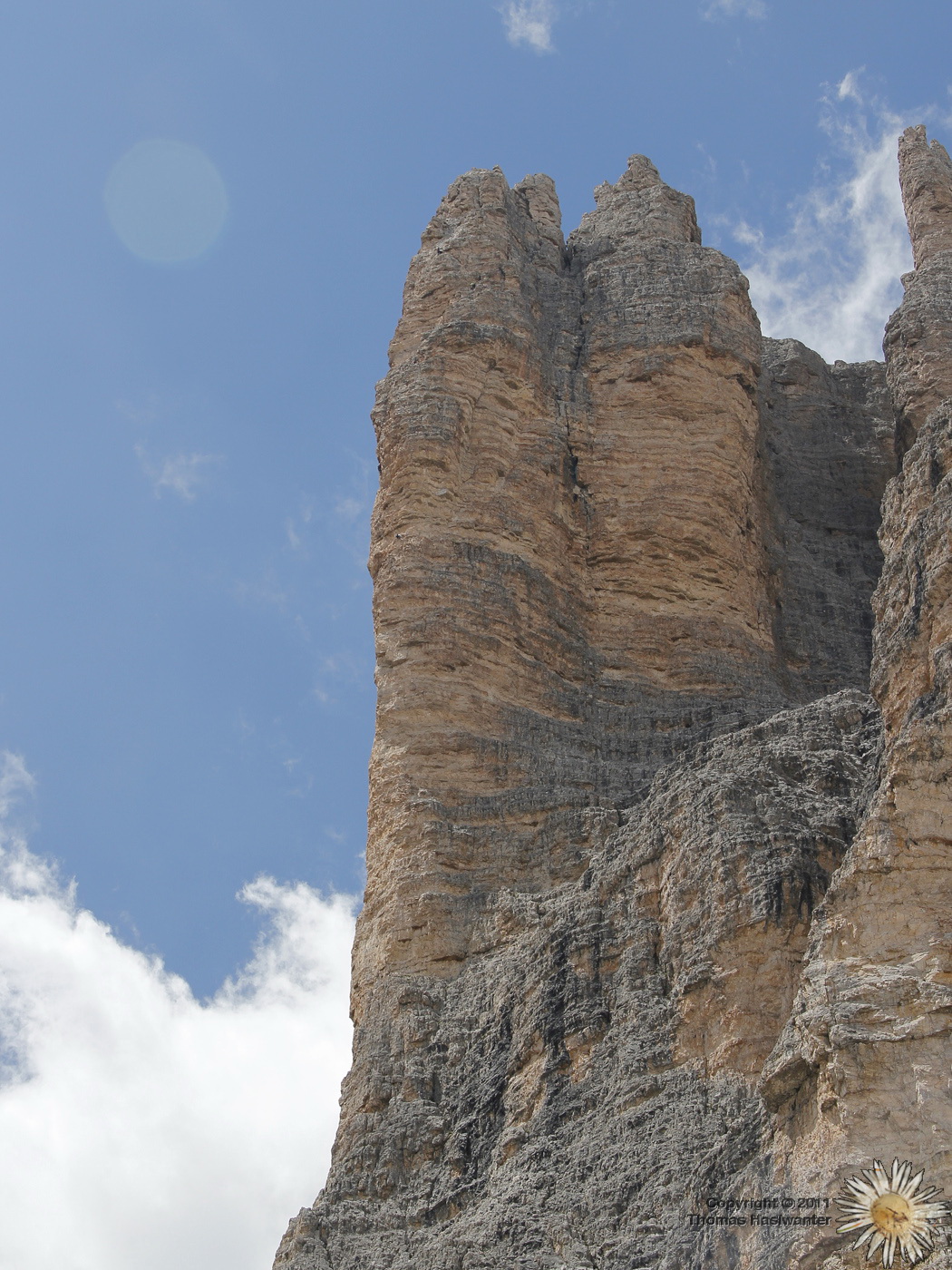 Ein Kletterparadies: wenn man genau hinsieht, kann man auf halber Höhe ein paar Kletterer an der linken Kante erkennen.