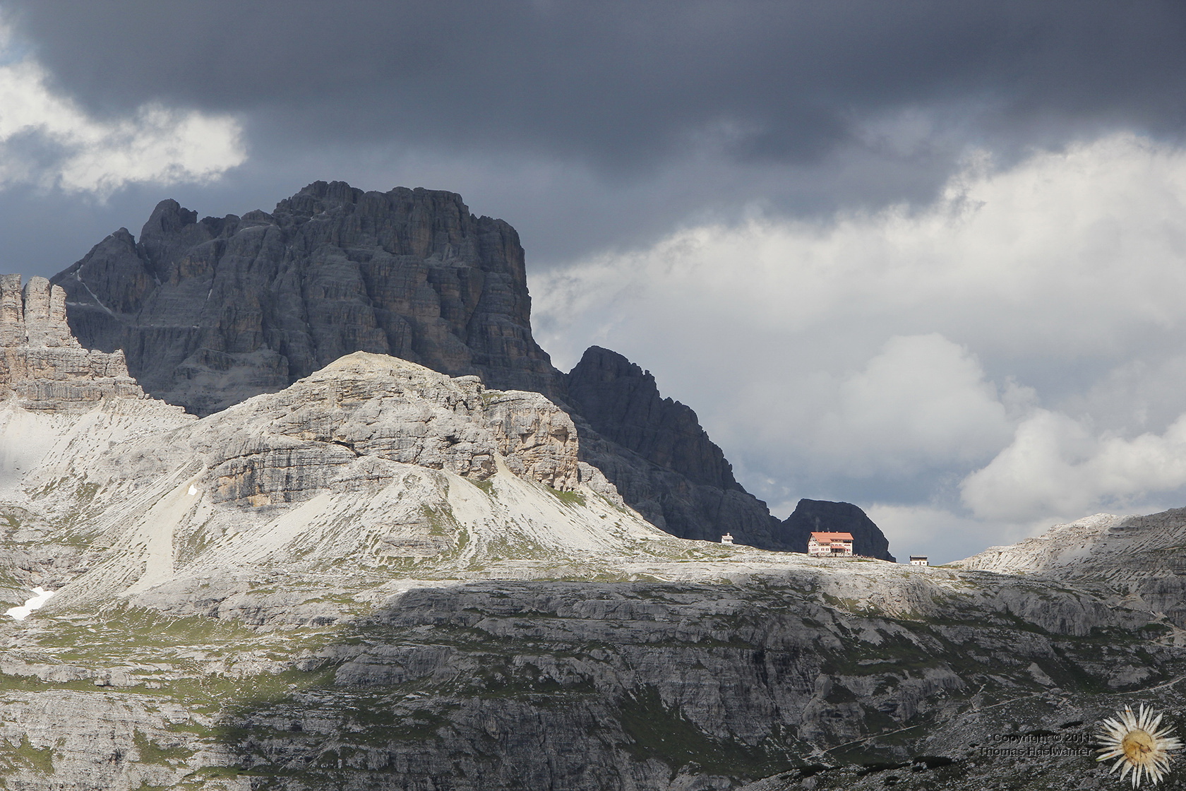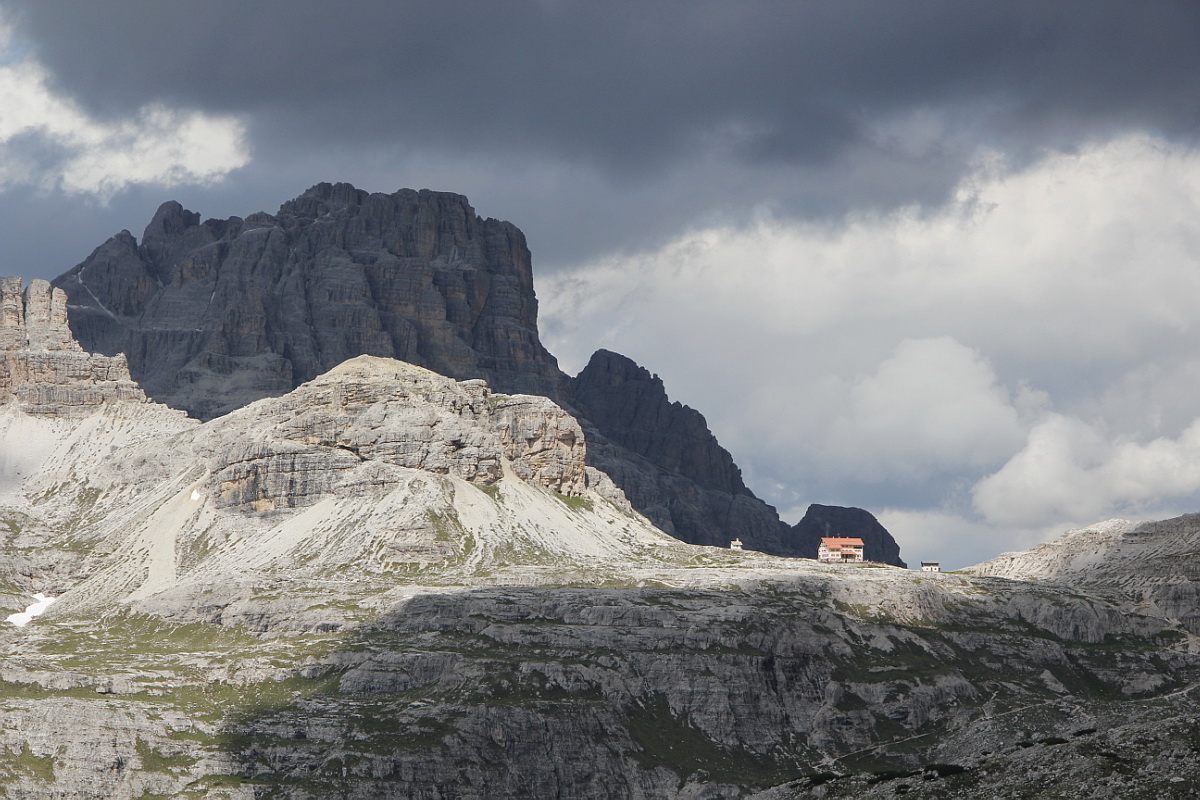 Die Drei-Zinnen-Hütte war im ersten Weltkrieg Schauplatz heftiger Gefechte zwischen Italien und Oestereich. Die Spuren davon sind heute noch zu sehen.